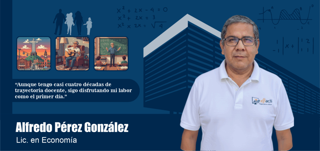 Me considero un profesor serio y tranquilo, pero a la vez accesible y con sentido del humor. Muy pronto notarás que no habrá duda ni comentario que quede sin atender. Aunque tengo casi cuatro décadas de trayectoria docente, sigo disfrutando mi labor como el primer día. Por respeto a tu formación, mi compromiso y entusiasmo permanecen siempre encendidos para acompañarte en tu desarrollo académico.